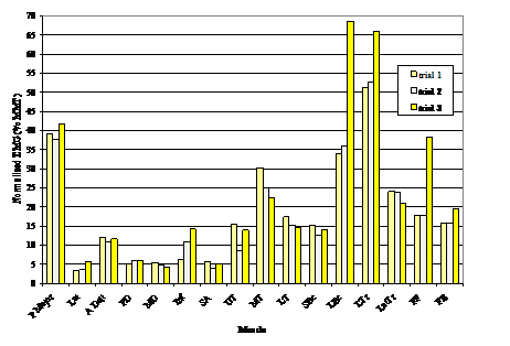 Figure 8: Subject 3’s EMG activity in 1st, 3rd, and 10th Positions (after removal of the 3rd trial of the 3rd position task.)